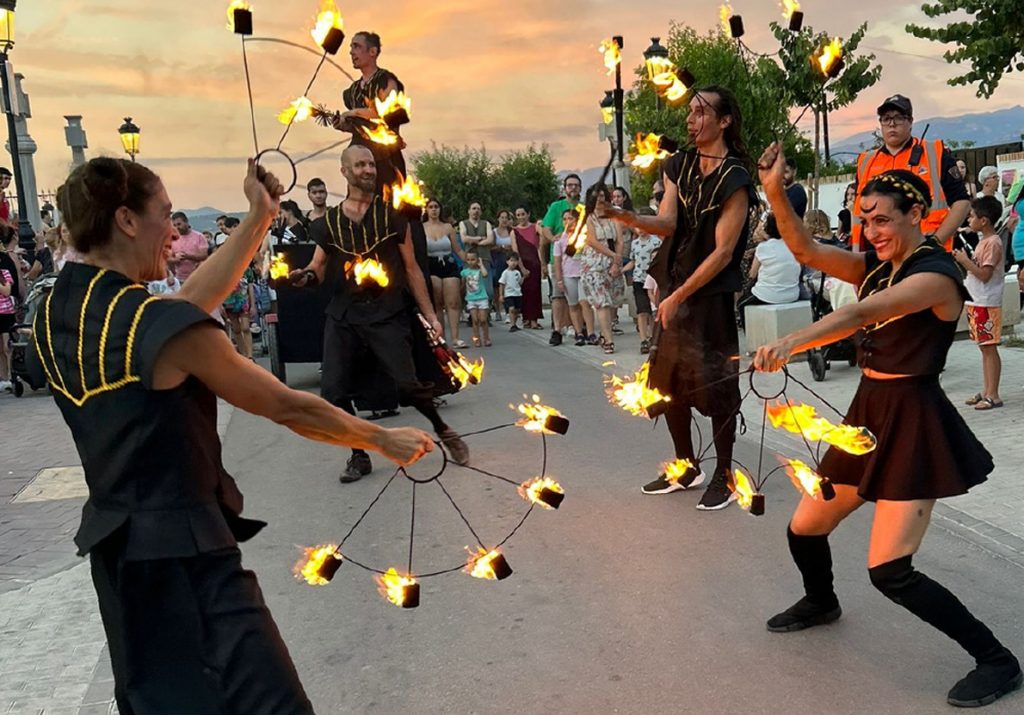 Espectáculo itinerante donde la danza y los malabares de fuego son los protagonistas. Un elenco de artistas profesionales del fuego que embellecerán la puesta en escena de cada localidad al calor de las llamas. En cada calle, rincón o plaza los malabaristas de fuego darán un toque mágico al momento. Un pasacalles de 60 minutos de duración que encaja con cualquier evento, tipo de público y momento de año. Escenas estáticas coreografiadas y números de fuego que hipnotizarán al público al instante.